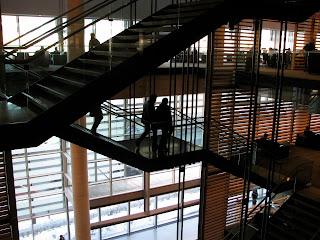 یا به قول خودشان “گراند بیبلیوتک” یکی از جاهایی است که سر زدن به آن، عادت هفتگی خانواده ما شده است و قبل از هرچیز انبوه مردمی که از رده های سنی مختلف می آیند و گاه پشت درهای آن منتظر باز شدنش می مانند توجه مان را جلب می کند. معماری ساده و شفاف آن با مصالح شیشه و بتن نمایان، فضاهای راحت و دلنشینی را خلق کرده که کمی با تصور سنتی ما از کتابخانه تفاوت دارد و هر بار افسوس می خورم که چرا زودتر با چنین برداشت نوآورانه ای از کتابخانه آشنا نبوده ام.